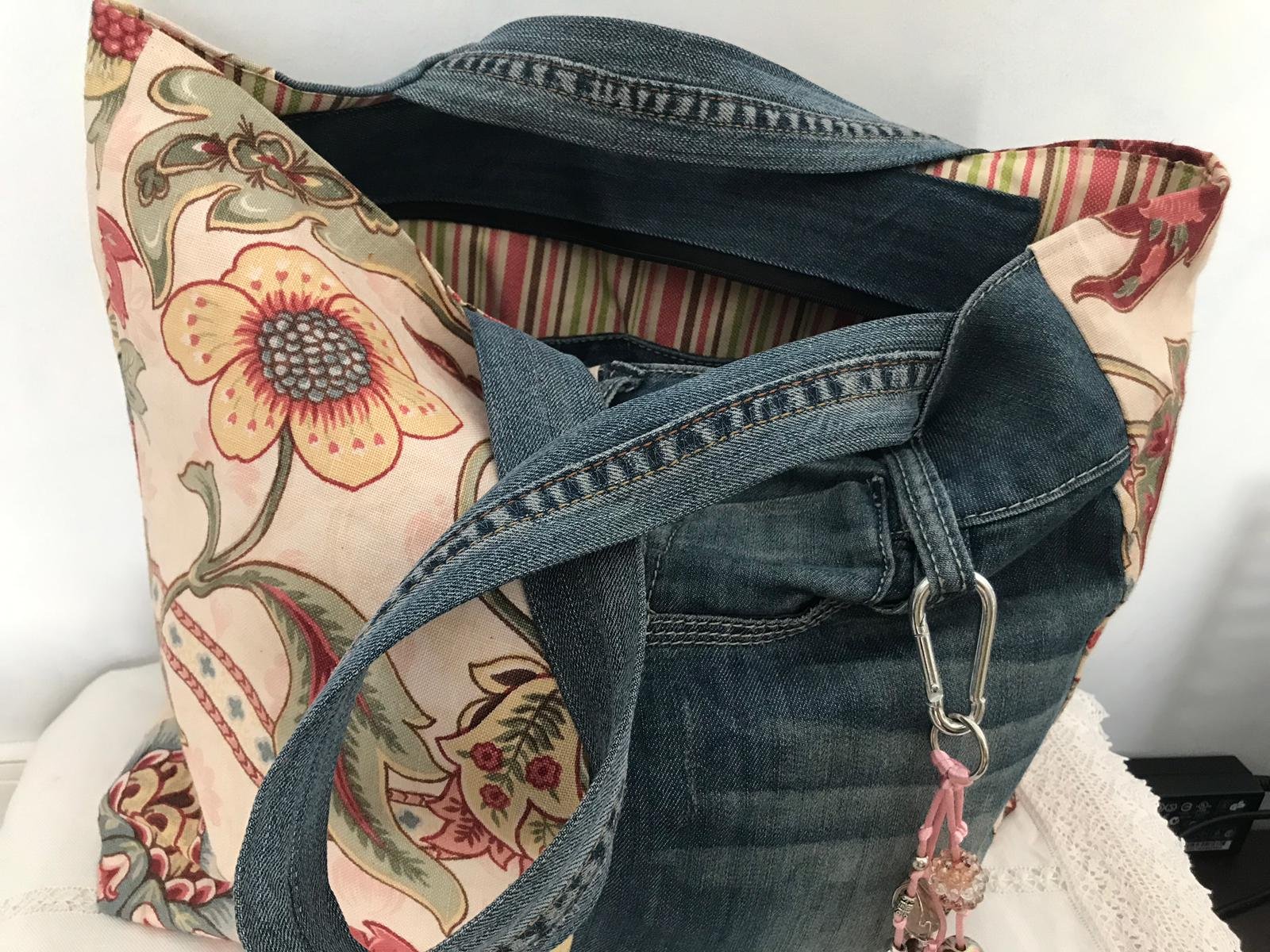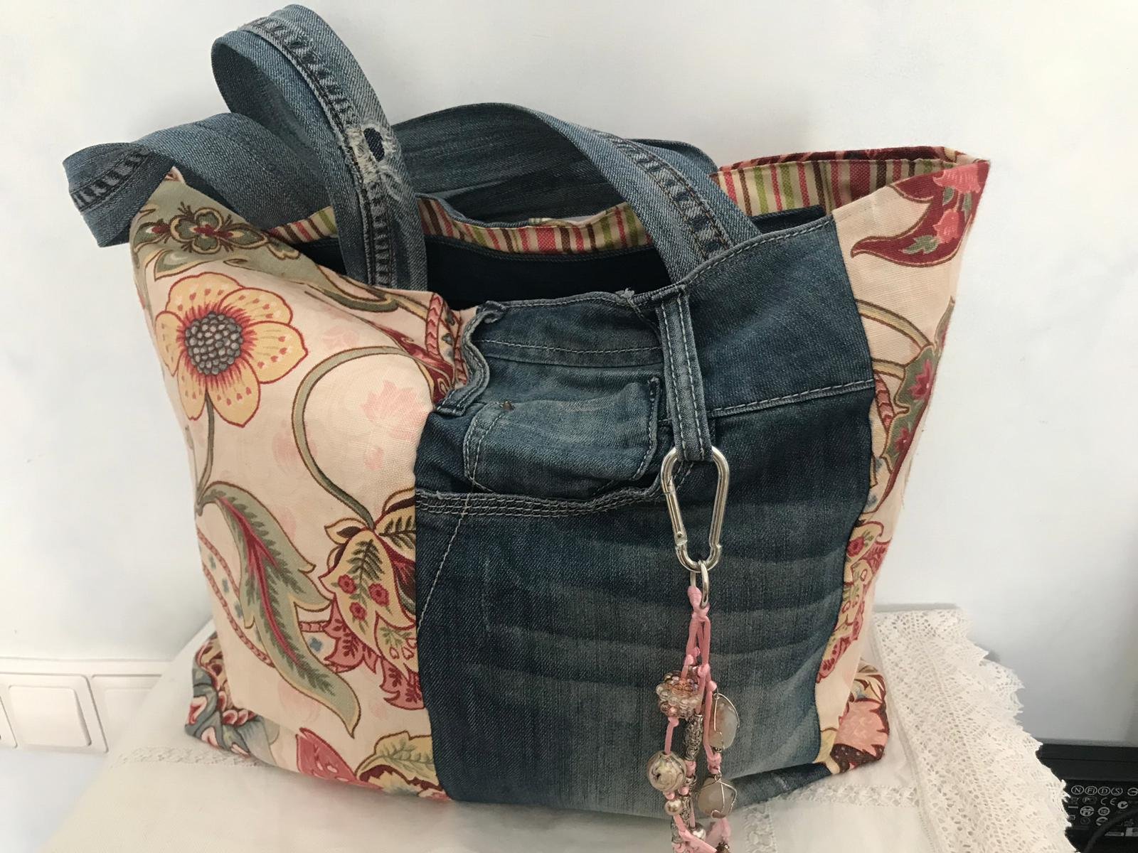 Precioso Bolso Jeans con flores, gran capacidad de almacenamiento y cantidad de bolsillos